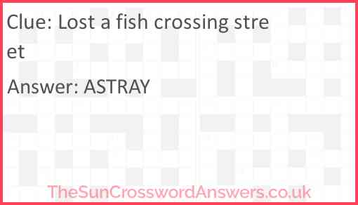 Lost a fish crossing street is a crossword clue for which we have 1 possible answer and we have spotted 4 times in our database. This crossword clue was last seen on 06 May 2025 in The Sun Cryptic Crossword puzzle!
