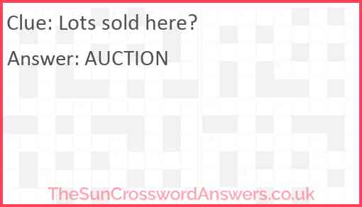 Lots sold here? is a crossword clue for which we have 1 possible answer and we have spotted 2 times in our database. This crossword clue was last seen on 18 August 2024 in The Sun Cryptic Crossword puzzle!