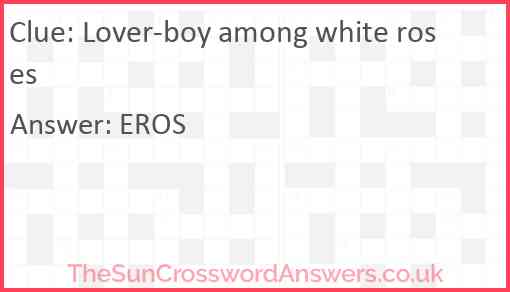 Lover-boy among white roses is a crossword clue for which we have 1 possible answer and we have spotted 1 times in our database. This crossword clue was last seen on 01 June 2024 in The Sun Cryptic Crossword puzzle!