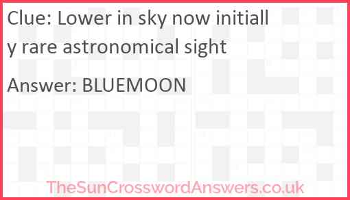Lower in sky now initially rare astronomical sight is a crossword clue for which we have 1 possible answer and we have spotted 2 times in our database. This crossword clue was last seen on 10 December 2024 in The Sun Cryptic Crossword puzzle!