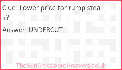 Lower price for rump steak? is a crossword clue for which we have 1 possible answer and we have spotted 2 times in our database. This crossword clue was last seen on 06 December 2024 in The Sun Cryptic Crossword puzzle!