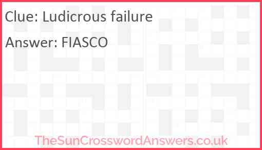 Ludicrous failure is a crossword clue for which we have 1 possible answer and we have spotted 2 times in our database. This crossword clue was last seen on 24 April 2021 in The Sun Coffee Time Crossword puzzle!