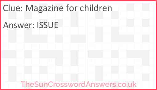 Magazine for children is a crossword clue for which we have 1 possible answer and we have spotted 5 times in our database. This crossword clue was last seen on 07 February 2024 in The Sun Cryptic Crossword puzzle!