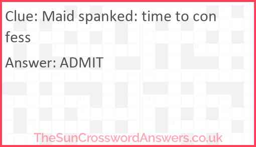Maid spanked: time to confess is a crossword clue for which we have 1 possible answer and we have spotted 1 times in our database. This crossword clue was last seen on 04 February 2022 in The Sun Cryptic Crossword puzzle!