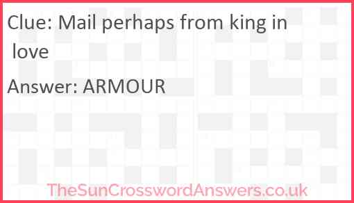 Mail perhaps from king in love is a crossword clue for which we have 1 possible answer and we have spotted 2 times in our database. This crossword clue was last seen on 30 July 2024 in The Sun Cryptic Crossword puzzle!