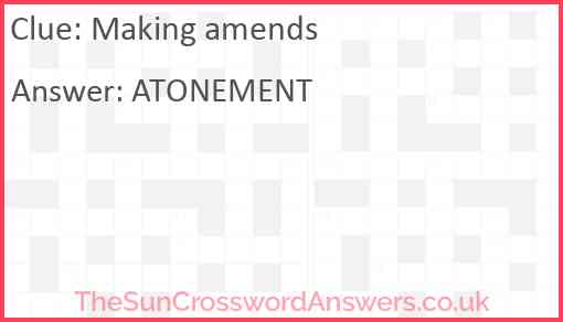 Making amends is a crossword clue for which we have 1 possible answer and we have spotted 3 times in our database. This crossword clue was last seen on 27 June 2024 in The Sun Coffee Time Crossword puzzle!