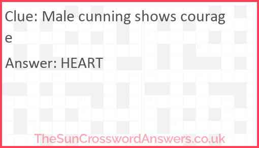 Male cunning shows courage is a crossword clue for which we have 1 possible answer and we have spotted 2 times in our database. This crossword clue was last seen on 22 November 2021 in The Sun Cryptic Crossword puzzle!