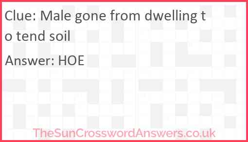 Male gone from dwelling to tend soil is a crossword clue for which we have 1 possible answer and we have spotted 1 times in our database. This crossword clue was last seen on 30 December 2023 in The Sun Cryptic Crossword puzzle!