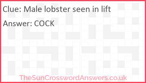 Male lobster seen in lift is a crossword clue for which we have 1 possible answer and we have spotted 3 times in our database. This crossword clue was last seen on 07 April 2025 in The Sun Cryptic Crossword puzzle!