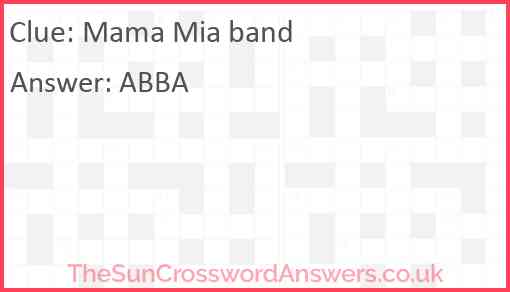 Mama Mia band is a crossword clue for which we have 1 possible answer and we have spotted 3 times in our database. This crossword clue was last seen on 07 July 2021 in The Sun Coffee Time Crossword puzzle!