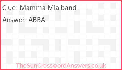 Mamma Mia band is a crossword clue for which we have 1 possible answer and we have spotted 2 times in our database. This crossword clue was last seen on 04 March 2025 in The Sun Coffee Time Crossword puzzle!