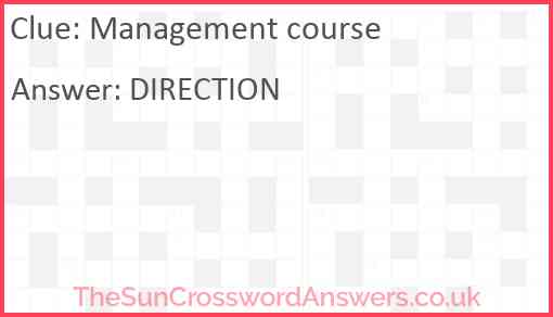 Management course is a crossword clue for which we have 1 possible answer and we have spotted 2 times in our database. This crossword clue was last seen on 09 July 2021 in The Sun Cryptic Crossword puzzle!