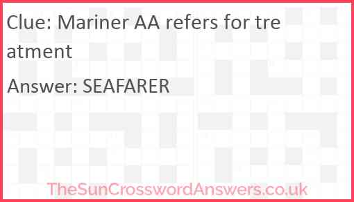 Mariner AA refers for treatment is a crossword clue for which we have 1 possible answer and we have spotted 2 times in our database. This crossword clue was last seen on 11 October 2024 in The Sun Cryptic Crossword puzzle!