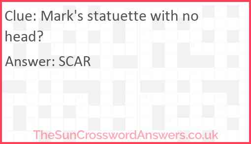 Mark's statuette with no head? is a crossword clue for which we have 1 possible answer and we have spotted 1 times in our database. This crossword clue was last seen on 12 February 2022 in The Sun Cryptic Crossword puzzle!