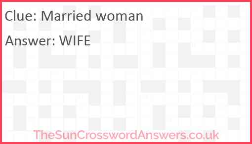 Married woman is a crossword clue for which we have 1 possible answer and we have spotted 2 times in our database. This crossword clue was last seen on 03 February 2023 in The Sun Coffee Time Crossword puzzle!