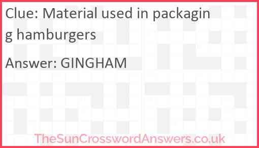 Material used in packaging hamburgers is a crossword clue for which we have 1 possible answer and we have spotted 2 times in our database. This crossword clue was last seen on 08 March 2025 in The Sun Cryptic Crossword puzzle!