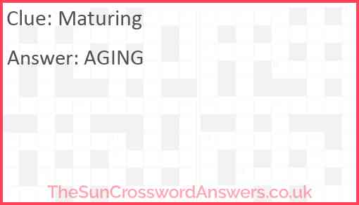 Maturing is a crossword clue for which we have 1 possible answer and we have spotted 2 times in our database. This crossword clue was last seen on 01 August 2022 in The Sun Coffee Time Crossword puzzle!