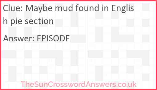 Maybe mud found in English pie section is a crossword clue for which we have 1 possible answer and we have spotted 3 times in our database. This crossword clue was last seen on 26 March 2025 in The Sun Cryptic Crossword puzzle!