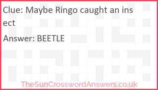 Maybe Ringo caught an insect is a crossword clue for which we have 1 possible answer and we have spotted 2 times in our database. This crossword clue was last seen on 10 August 2024 in The Sun Cryptic Crossword puzzle!