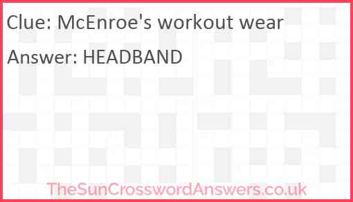 McEnroe's workout wear is a crossword clue for which we have 1 possible answer and we have spotted 1 times in our database. This crossword clue was last seen on 10 March 2025 in The Sun Coffee Time Crossword puzzle!