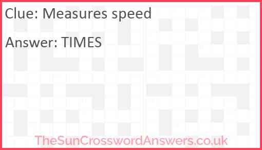 Measures speed is a crossword clue for which we have 1 possible answer and we have spotted 1 times in our database. This crossword clue was last seen on 23 November 2023 in The Sun Coffee Time Crossword puzzle!