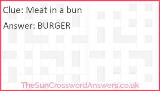 Meat in a bun is a crossword clue for which we have 1 possible answer and we have spotted 1 times in our database. This crossword clue was last seen on 20 November 2024 in The Sun Coffee Time Crossword puzzle!