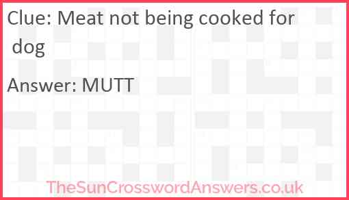 Meat not being cooked for dog is a crossword clue for which we have 1 possible answer and we have spotted 1 times in our database. This crossword clue was last seen on 26 July 2019 in The Sun Cryptic Crossword puzzle!