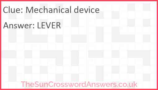 Mechanical device is a crossword clue for which we have 1 possible answer and we have spotted 3 times in our database. This crossword clue was last seen on 18 November 2022 in The Sun Coffee Time Crossword puzzle!