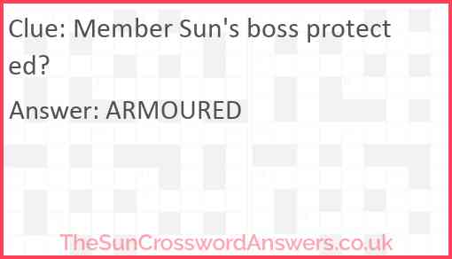 Member Sun's boss protected? is a crossword clue for which we have 1 possible answer and we have spotted 3 times in our database. This crossword clue was last seen on 29 September 2023 in The Sun Cryptic Crossword puzzle!