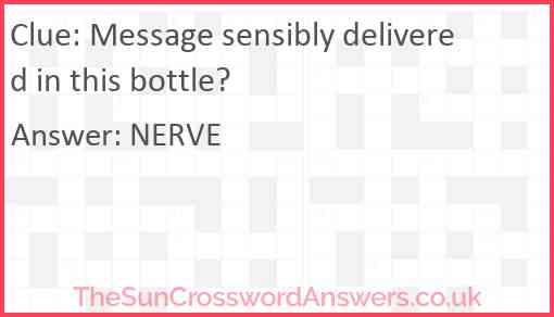 Message sensibly delivered in this bottle? is a crossword clue for which we have 1 possible answer and we have spotted 1 times in our database. This crossword clue was last seen on 28 April 2022 in The Sun Cryptic Crossword puzzle!