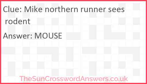 Mike northern runner sees rodent is a crossword clue for which we have 1 possible answer and we have spotted 2 times in our database. This crossword clue was last seen on 31 July 2023 in The Sun Cryptic Crossword puzzle!