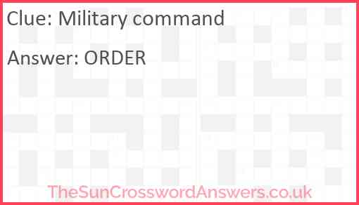 Military command is a crossword clue for which we have 1 possible answer and we have spotted 1 times in our database. This crossword clue was last seen on 11 June 2024 in The Sun Coffee Time Crossword puzzle!