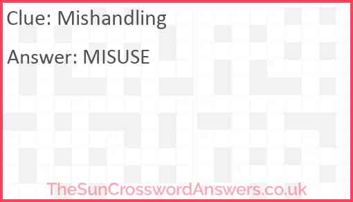 Mishandling is a crossword clue for which we have 1 possible answer and we have spotted 3 times in our database. This crossword clue was last seen on 06 November 2024 in The Sun Coffee Time Crossword puzzle!