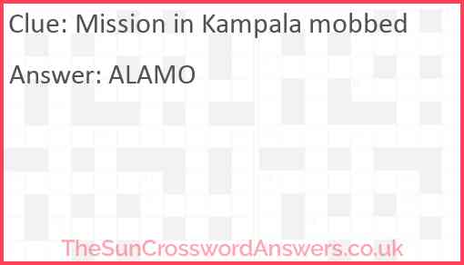Mission in Kampala mobbed is a crossword clue for which we have 1 possible answer and we have spotted 1 times in our database. This crossword clue was last seen on 23 May 2024 in The Sun Cryptic Crossword puzzle!