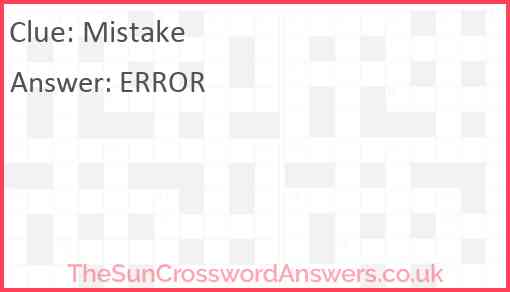 Mistake is a crossword clue for which we have 2 possible answer and we have spotted 14 times in our database. This crossword clue was last seen on 07 January 2025 in The Sun Coffee Time Crossword puzzle!