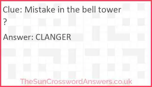 Mistake in the bell tower? is a crossword clue for which we have 1 possible answer and we have spotted 1 times in our database. This crossword clue was last seen on 10 March 2025 in The Sun Cryptic Crossword puzzle!