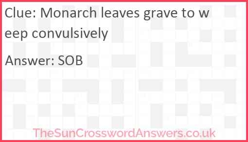 Monarch leaves grave to weep convulsively is a crossword clue for which we have 1 possible answer and we have spotted 2 times in our database. This crossword clue was last seen on 09 April 2021 in The Sun Cryptic Crossword puzzle!