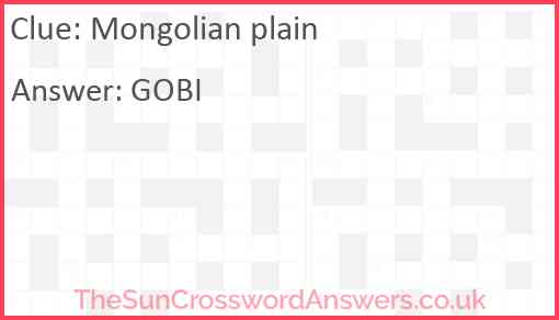 Mongolian plain is a crossword clue for which we have 1 possible answer and we have spotted 9 times in our database. This crossword clue was last seen on 23 May 2025 in The Sun Coffee Time Crossword puzzle!