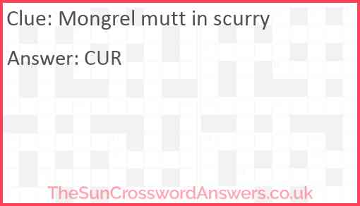 Mongrel mutt in scurry is a crossword clue for which we have 1 possible answer and we have spotted 2 times in our database. This crossword clue was last seen on 06 October 2023 in The Sun Cryptic Crossword puzzle!