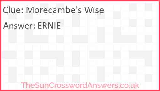 Morecambe's Wise is a crossword clue for which we have 1 possible answer and we have spotted 2 times in our database. This crossword clue was last seen on 19 August 2024 in The Sun Coffee Time Crossword puzzle!