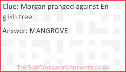Morgan pranged against English tree is a crossword clue for which we have 1 possible answer and we have spotted 2 times in our database. This crossword clue was last seen on 27 September 2022 in The Sun Cryptic Crossword puzzle!