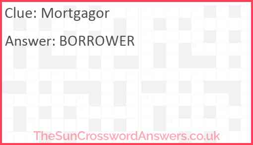 Mortgagor is a crossword clue for which we have 1 possible answer and we have spotted 2 times in our database. This crossword clue was last seen on 15 November 2023 in The Sun Coffee Time Crossword puzzle!