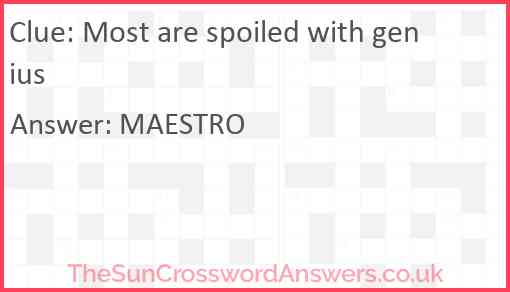 Most are spoiled with genius is a crossword clue for which we have 1 possible answer and we have spotted 1 times in our database. This crossword clue was last seen on 01 August 2024 in The Sun Cryptic Crossword puzzle!