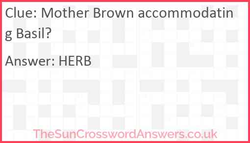 Mother Brown accommodating Basil? is a crossword clue for which we have 1 possible answer and we have spotted 3 times in our database. This crossword clue was last seen on 01 June 2024 in The Sun Cryptic Crossword puzzle!