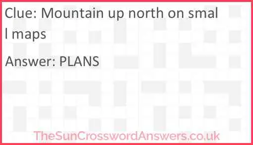 Mountain up north on small maps is a crossword clue for which we have 1 possible answer and we have spotted 3 times in our database. This crossword clue was last seen on 14 March 2024 in The Sun Cryptic Crossword puzzle!
