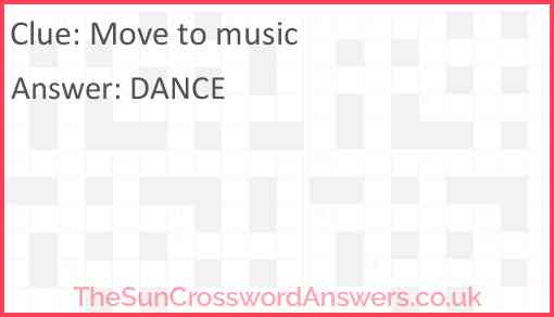 Move to music is a crossword clue for which we have 1 possible answer and we have spotted 19 times in our database. This crossword clue was last seen on 03 June 2025 in The Sun Coffee Time Crossword puzzle!