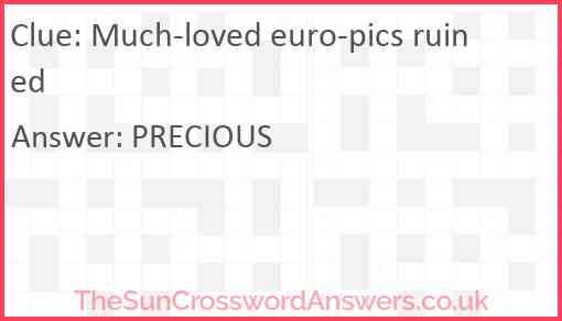 Much-loved euro-pics ruined is a crossword clue for which we have 1 possible answer and we have spotted 2 times in our database. This crossword clue was last seen on 21 May 2021 in The Sun Cryptic Crossword puzzle!
