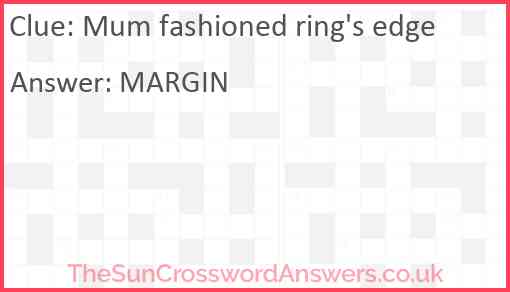 Mum fashioned ring's edge is a crossword clue for which we have 1 possible answer and we have spotted 1 times in our database. This crossword clue was last seen on 19 December 2024 in The Sun Cryptic Crossword puzzle!