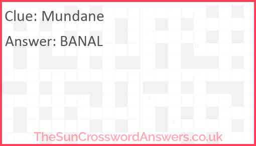 Mundane is a crossword clue for which we have 1 possible answer and we have spotted 1 times in our database. This crossword clue was last seen on 06 January 2025 in The Sun Coffee Time Crossword puzzle!