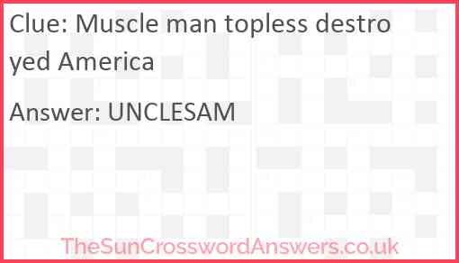 Muscle man topless destroyed America is a crossword clue for which we have 1 possible answer and we have spotted 1 times in our database. This crossword clue was last seen on 29 September 2023 in The Sun Cryptic Crossword puzzle!